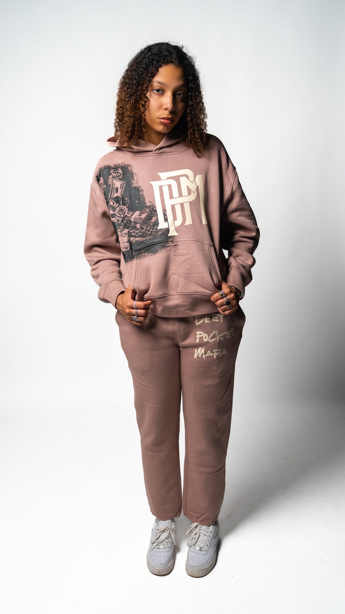 Self-fabric elasticated waistband & hem cuffs, tonal internal drawcord, 2 side pockets, single pocket at back